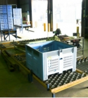 Rotacaster Wheel의 전후좌후, 사선 및 360º 회전기능을 이용한 Conveyor 설비 적용 사례. 해당 사진을 클릭하면 큰 사진을 볼 수 있습니다.